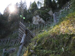 Fra quelle zone dove il costo era inferiore al beneficio c’era la valanga che si sviluppa sopra le scuole di Ambrì, in zona Faura Grop. Si quindi provveduto ad allestire un progetto di premunizione prevedendo opere in legno e piantagioni. Costo preventivato CHF 0.6 mio. L’anno scorso sono stati collaudati i lavori con un costo complessivo di CHF 0.55 mio. Durante la gita si sono visitati i lavori effettuati (fig. 7).